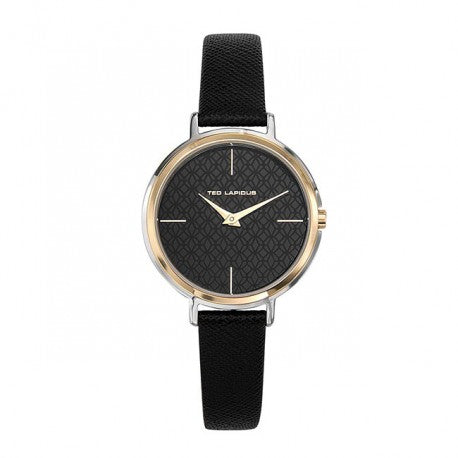 Montre Acier Lunette Dore Bracelet Cuir Noir by Ted Lapidus